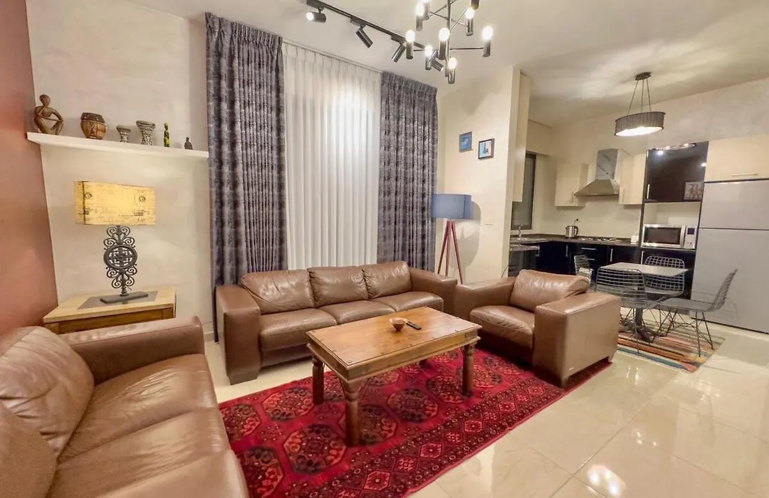 88 m² High-End Apartment 2Bdr In The Most Lively Amman شقة فاخرة في الدوار السابع is located 3.4 km from the Royal Automobile Museum and 18 minutes on foot from the High-end Baraka Shopping Mall. Guests can make use of Wi-Fi for both business and leisure purposes.